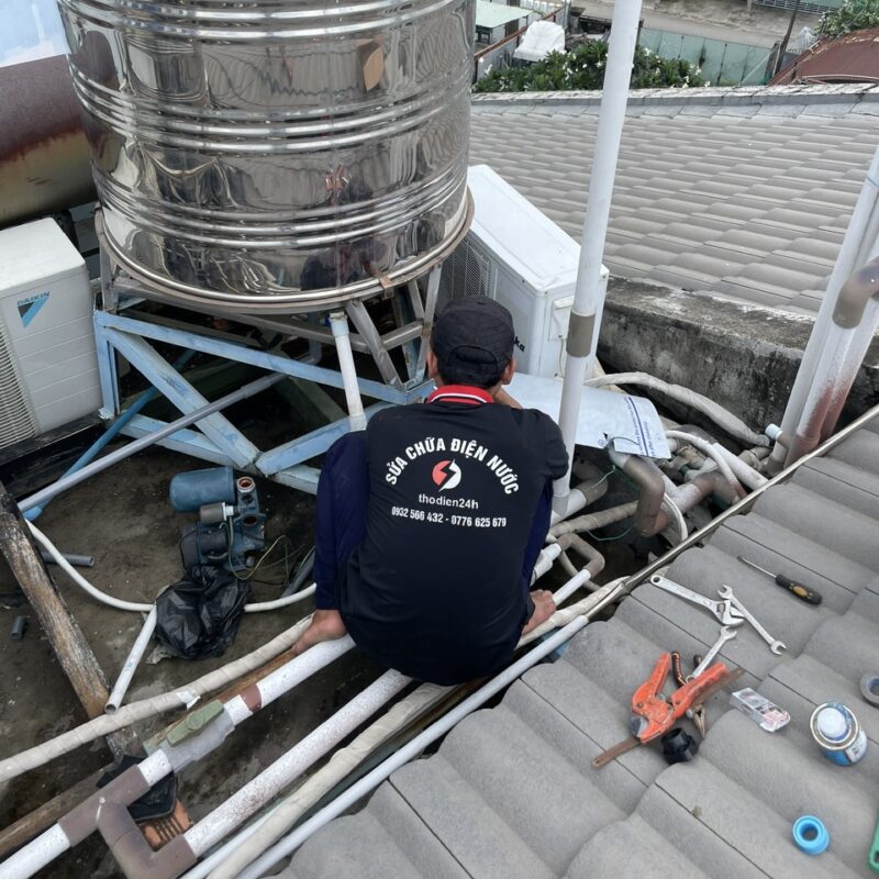 Sửa máy bơm, thay tụ – phao điện, lắp tủ điều khiển bơm tăng áp, xử lý bơm không tự ngắt.